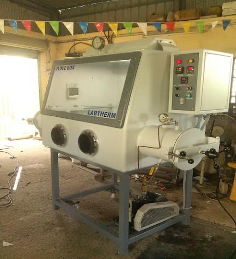The main Chamber will be provided with a Vacuum Port, Gas purging port and gas inlet Port with suitable valves arrangement The vacuum Port will be used to vacuumized the chamber to remove the Air / Atmosphere / Moisture vapors from the chamber. The Chamber under Negative pressure can be now purged with any Inert Gas like Nitrogen etc. to have a working Inert atmosphere inside.